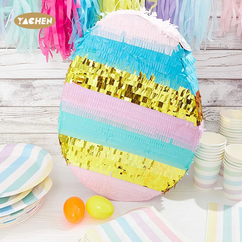 Barevná pinata ve tvaru vejce, vyrobeno z vysoce kvalitního papíru, bezpečné a šetrné k životnímu prostředí.