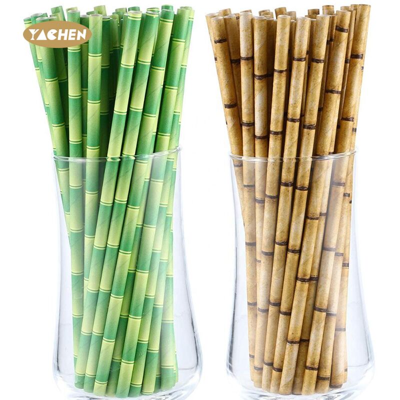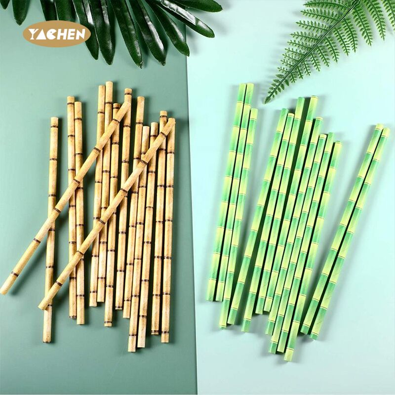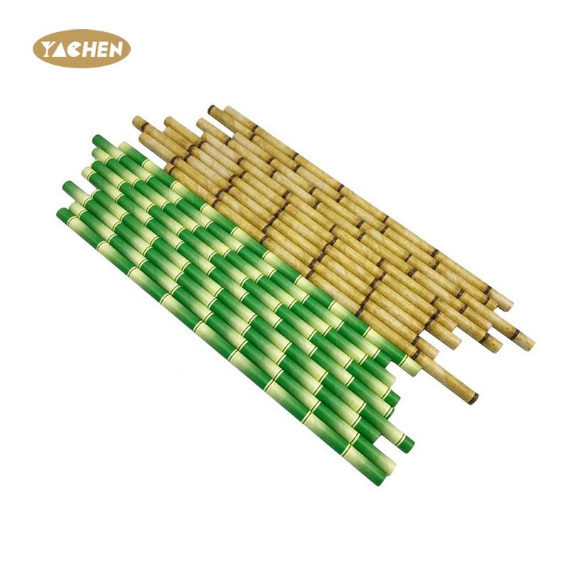Paper straws printed in the shape of a bamboo pole
