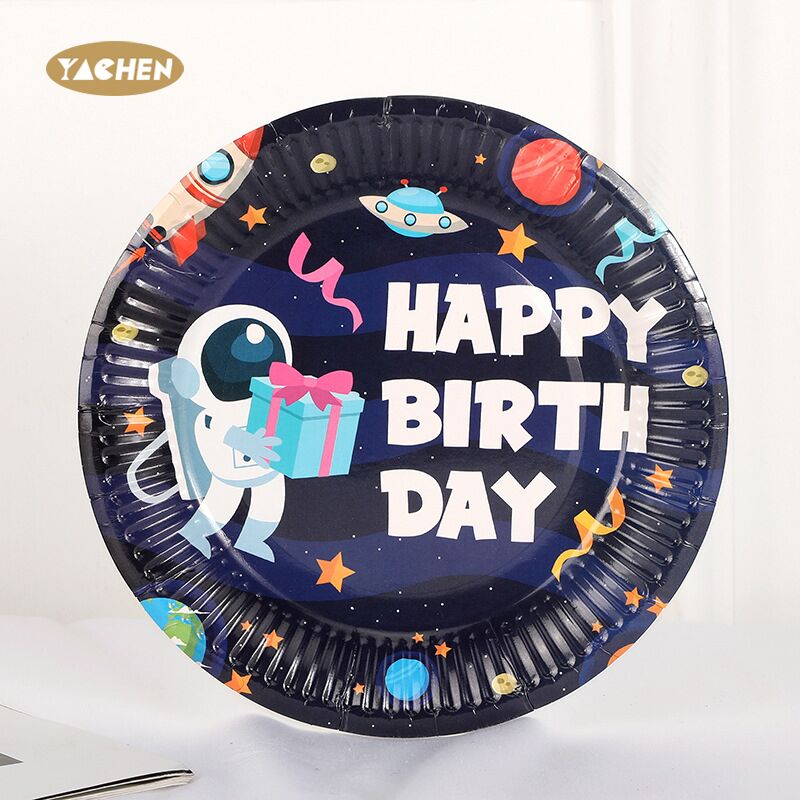 Made of high quality paper, safe to use, waterproof material, birthday party tableware decoration set.
