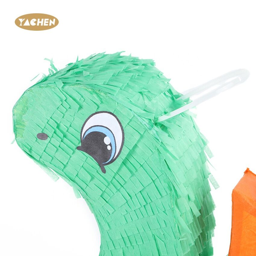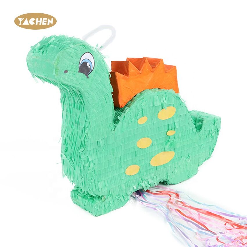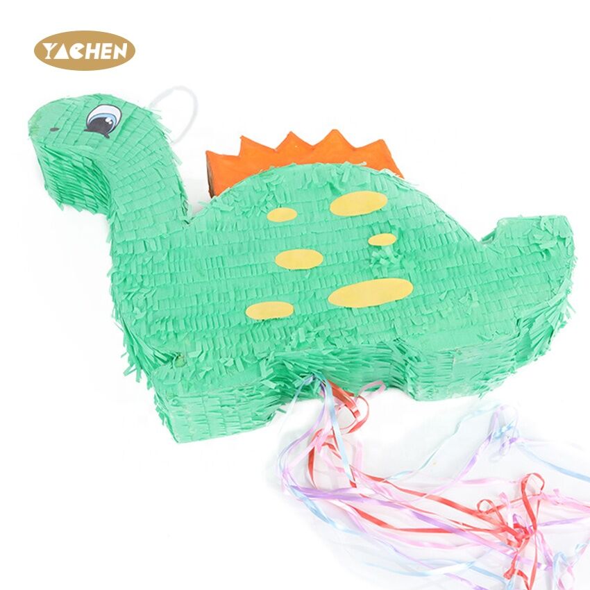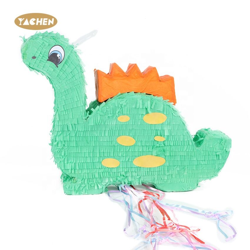 A pinata in the shape of a small dinosaur, made of high-quality paper.