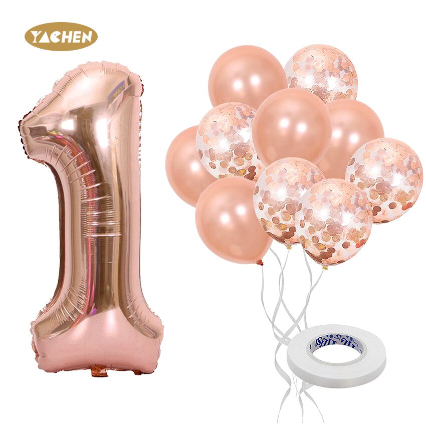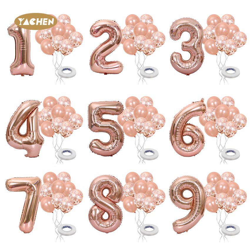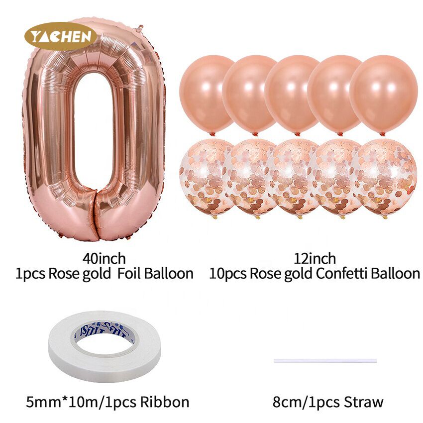 11pcs Nmber balloon set,include 1pc large 40 inch foil number balloon,5pcs rose gold confetti balloon and 5pcs rose gold latex balloon.