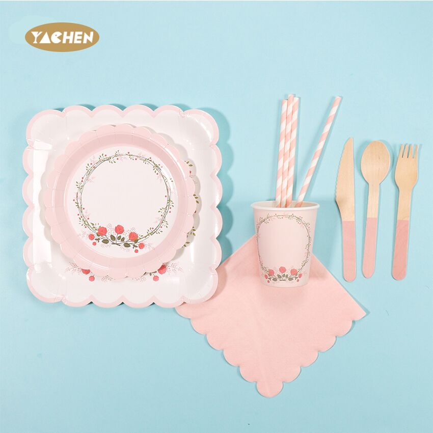 Garland Print Paper Plate Cup Party Cutlery Set