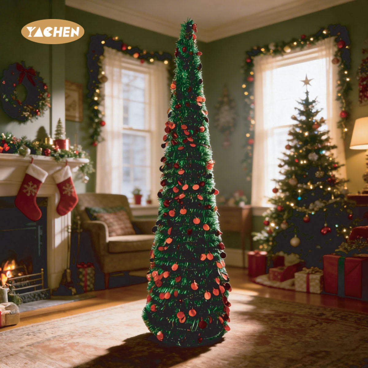 Made with eco-friendly tinsel, this artificial holiday tree is durable and built to last. Ideal for indoor use, it provides a safe and sturdy decorative option for your family gatherings.