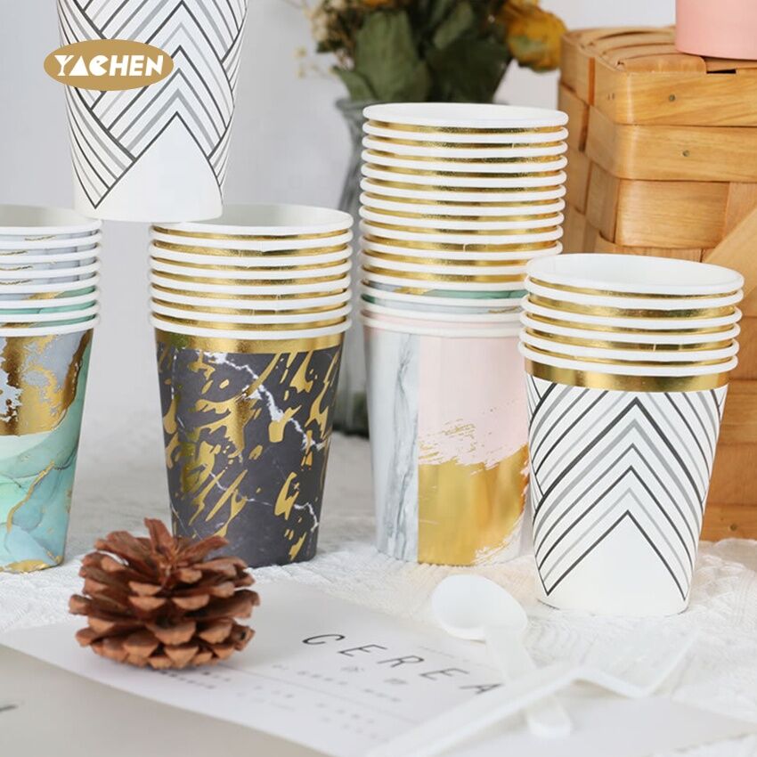 ถ้วยกระดาษทิ้งวันเกิดการพิมพ์ปั๊มร้อน 9 ออนซ์